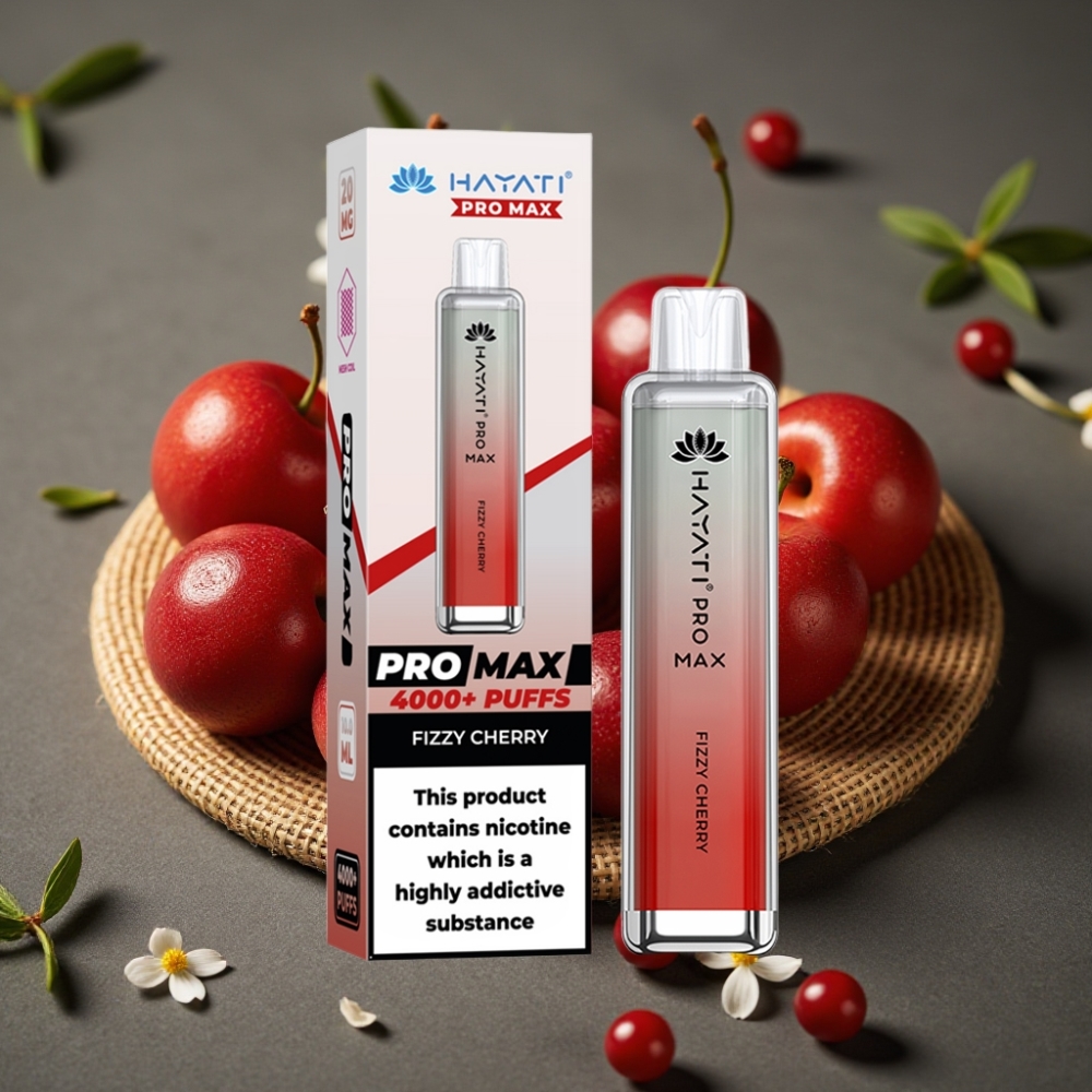 Hayati Pro Max 4000 Puff Eldobható E-cigaretta Bubi Csersznye Íz 28×28×120mm 2%, 5% Nikotin Erősség 1400mAh Akku 4000 Puff Dual 1.1 Ohm Mesh Coil