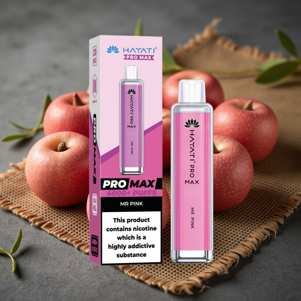Hayati Pro Max 4000 Puffos Eldobható E-Cigi Rózsaszín (Mr Pink), 1400mAh, Duális 1.1 Ohm Mesh Coil, 2%/5% Nikotin