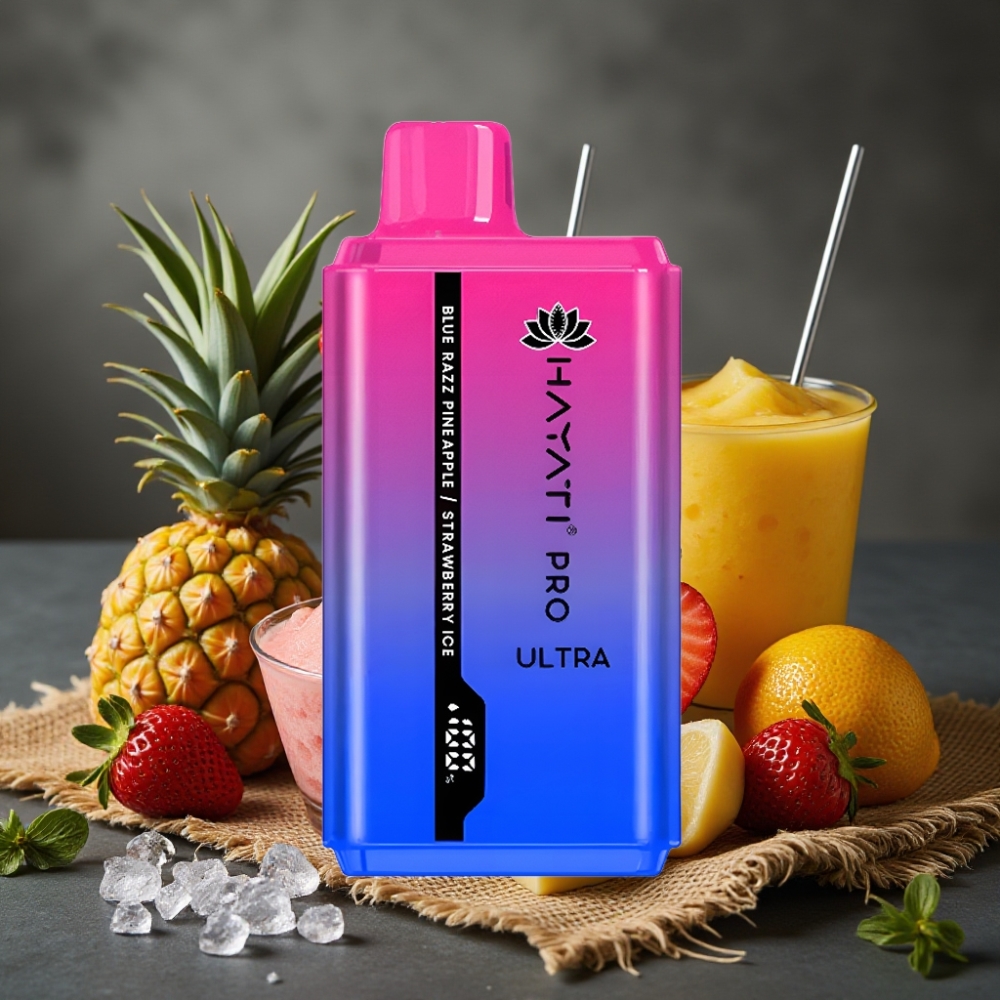 Hayati Pro Ultra 15000 Puff Egyszerhasználatos E-cigaretta Kék Málna-Ananász-Eper Jég 850mAh Akkuval, 2×12ml E-likvid, 2% Nikotin, 49 Ízváltozat