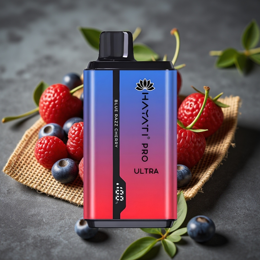 Hayati Pro Ultra 15000 Puff Egyszerhasználatos E-cigaretta Kék Málna-Cseresznye, 850mAh, 2×12ml, 2% Nikotin, 49 Íz