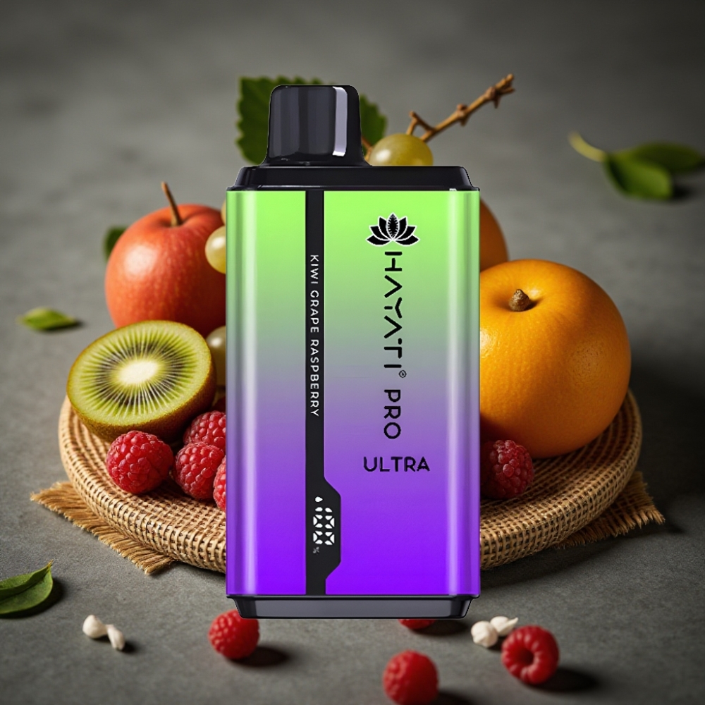 Hayati Pro Ultra 15000 Puff Egyszerhasználatos E-cigaretta Kivi Szőlő Málna, 850mAh Akku, 2×12ml E-liquid, 2% Nikotin, 49 Íz